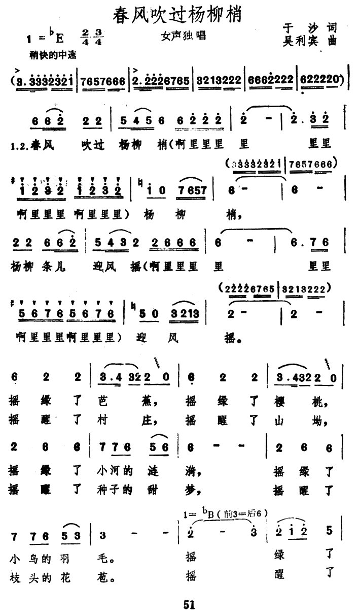 - [歌谱] 春风吹过杨柳梢