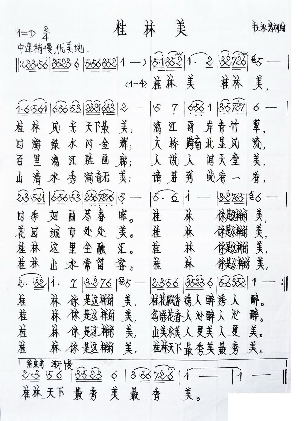 - [歌谱] 人人都说桂林美