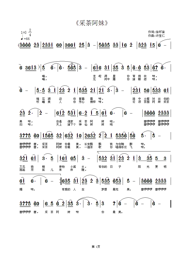 - [歌谱] 哥哥妹妹去采茶 潇洒浪漫风词