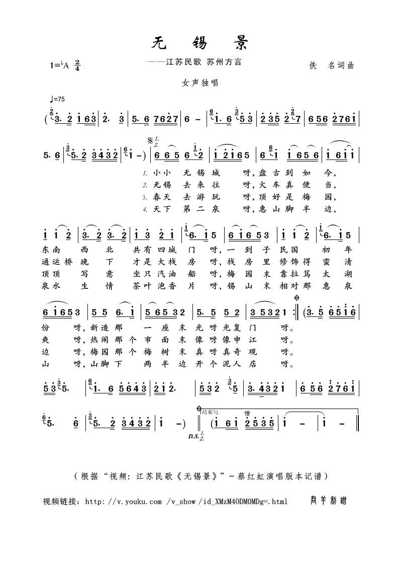 - [歌谱,吉他谱] 无锡景 江苏民歌