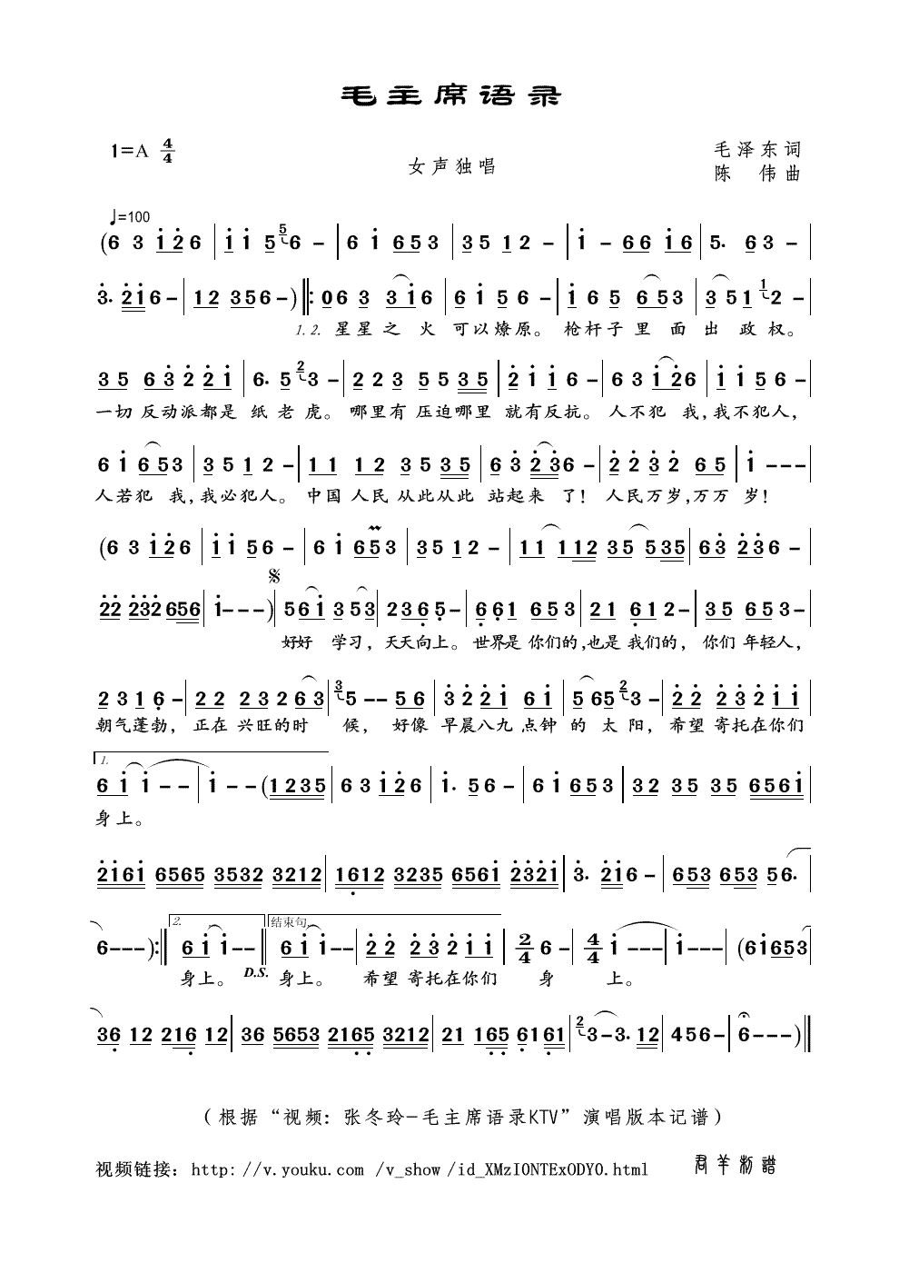 毛主席语录 视频 张冬玲 毛主席语录KTV 本