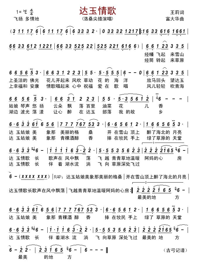 - [歌谱] 雪山草原的恋爱 洛桑尖措