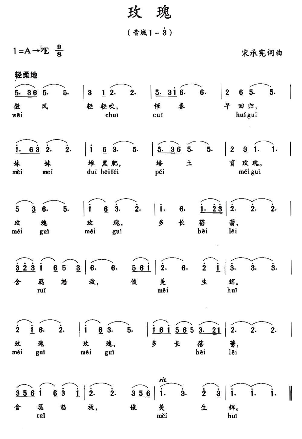 - [歌谱] 玫瑰花