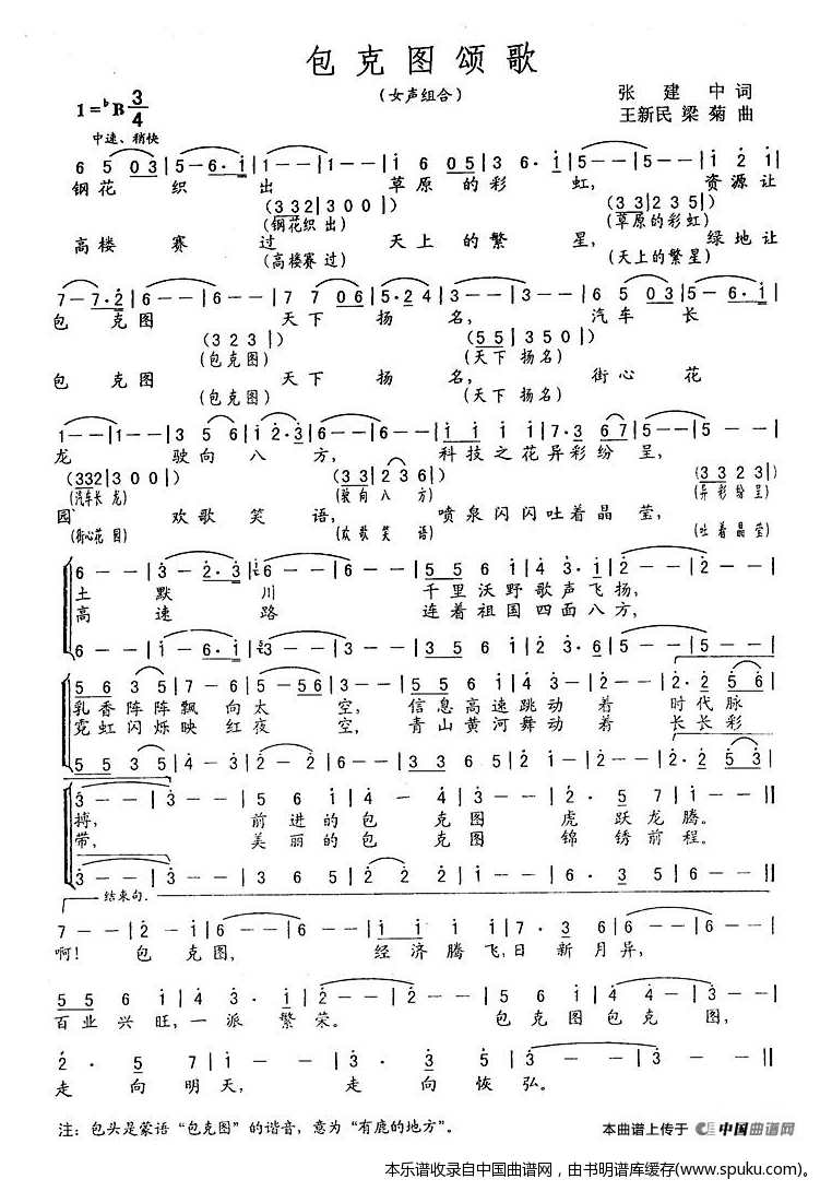 - [歌谱] 颂歌来自咱龙乡 合唱谱