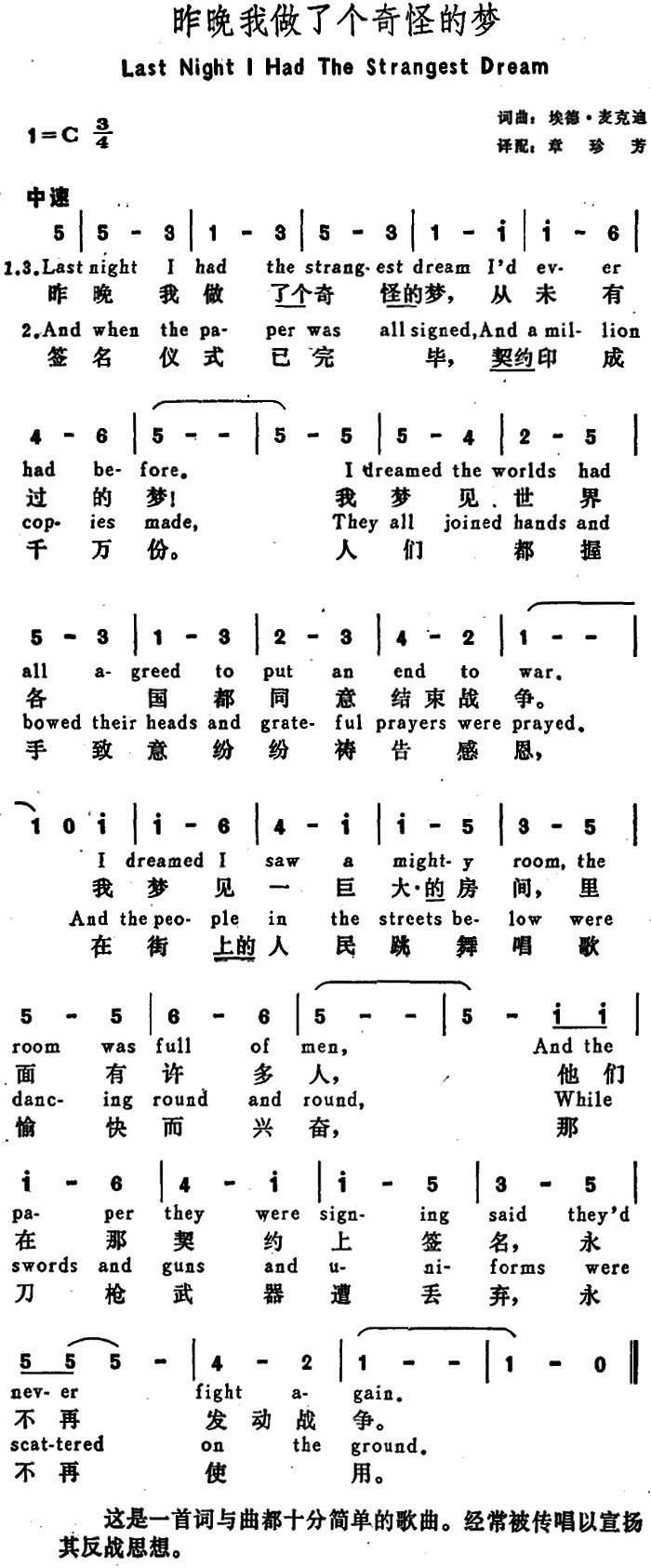 美 昨晚我做了个奇怪的梦 Last Night I Had The Strangest Dream
