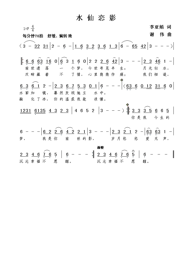 - [歌谱] 水仙 王亚民