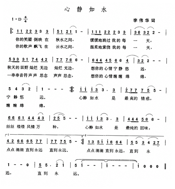 - [歌谱] 我心静如水