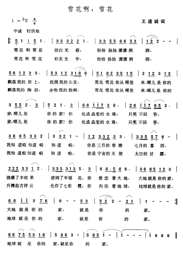 - [歌谱] 雪花啊雪花