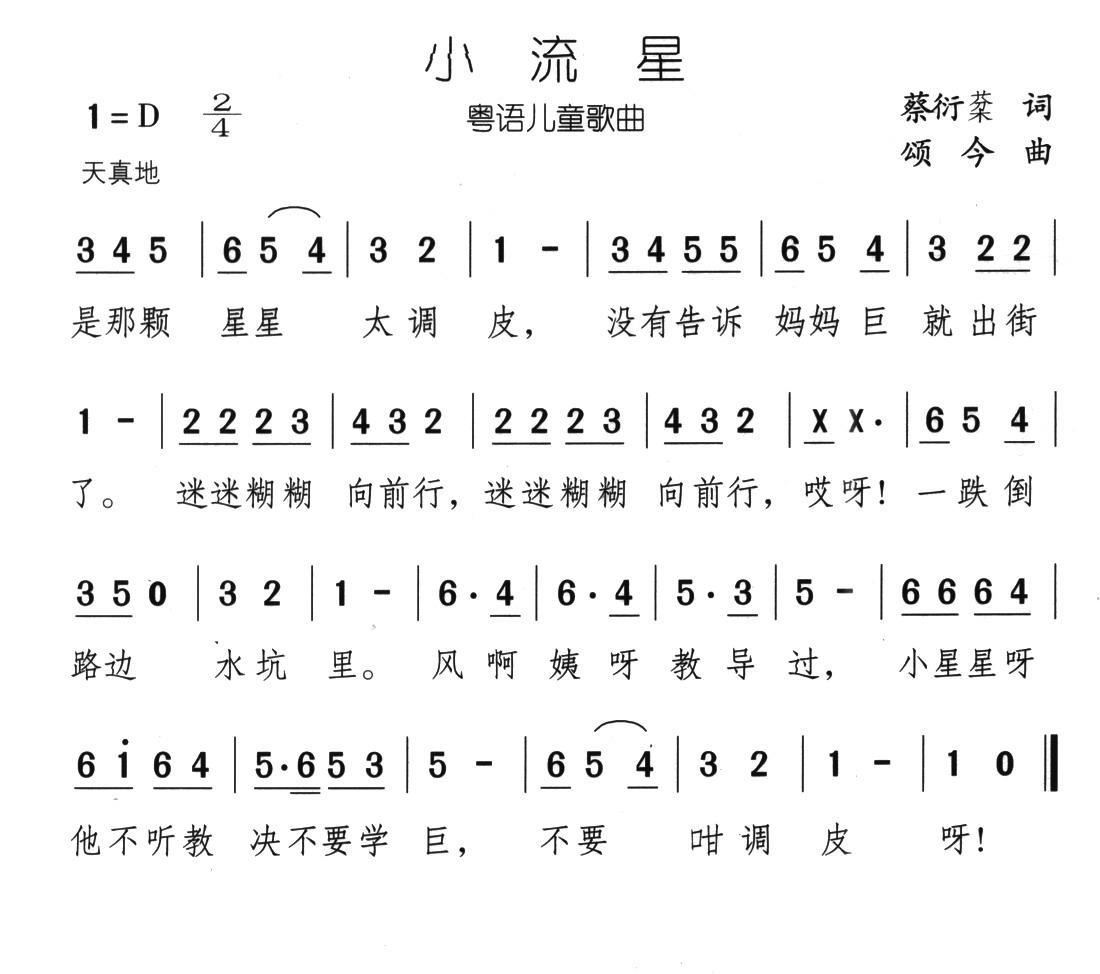 - [歌谱] 小流星