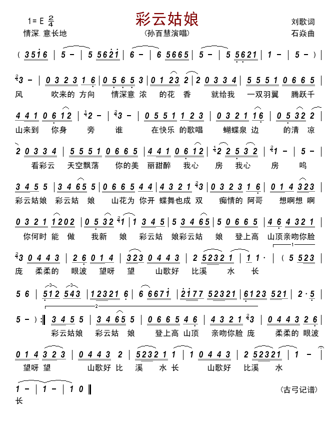 - [歌谱] 彩云