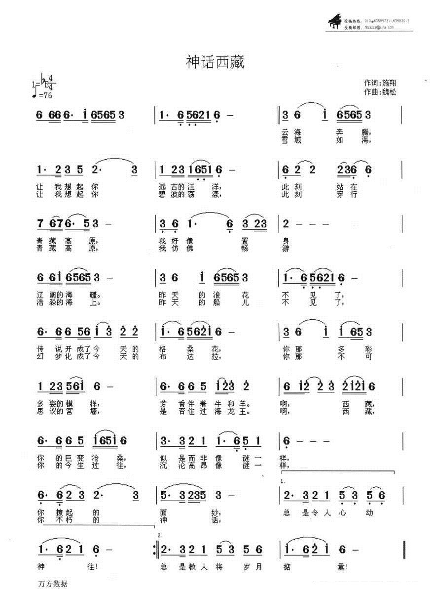 - [歌谱] 西藏