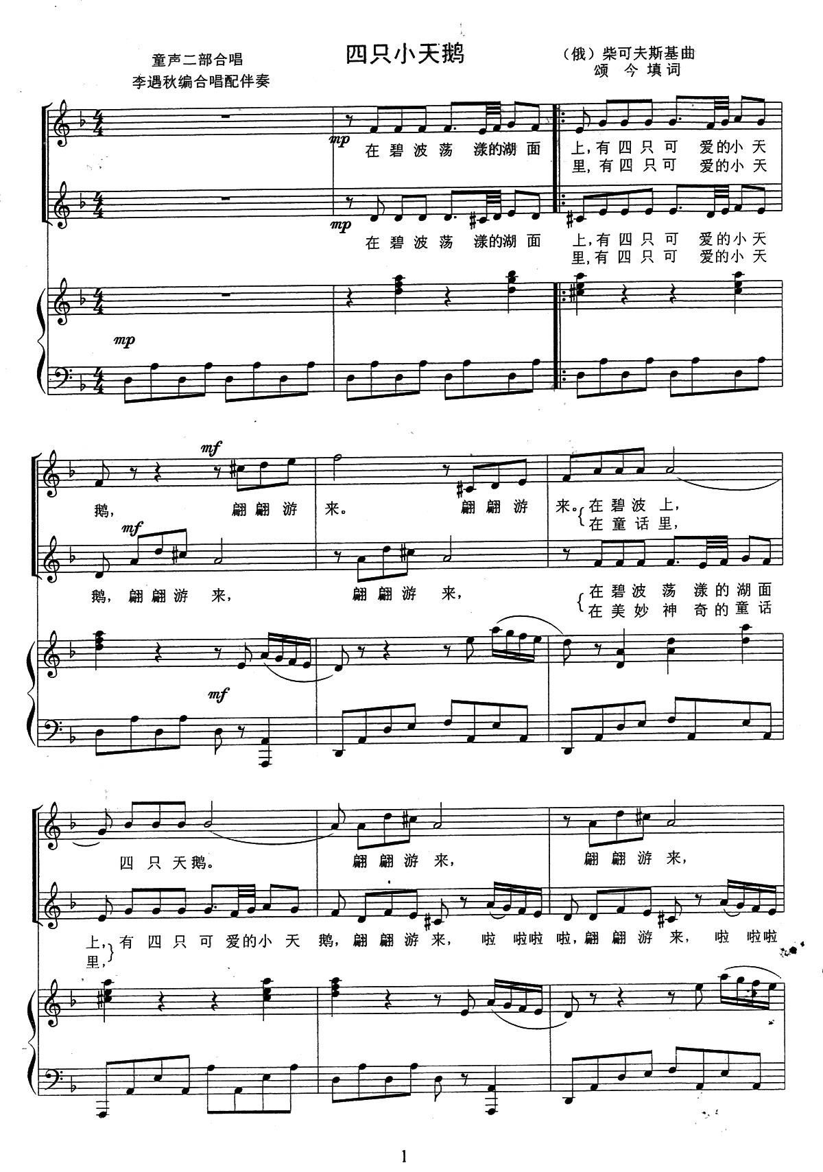 俄 四只小天鹅 童声三部合唱 合唱谱
