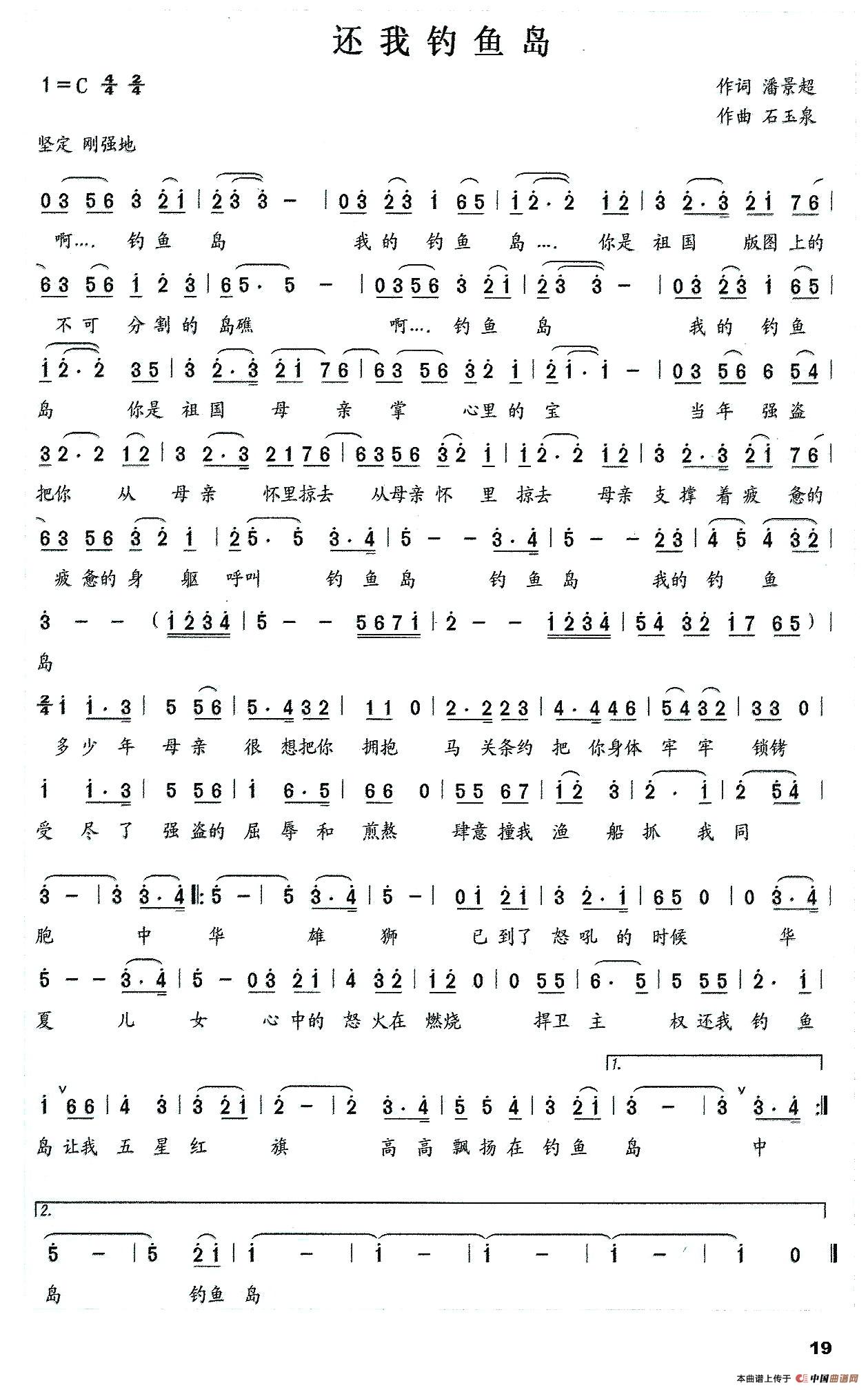 - [歌谱] 还我钓鱼岛