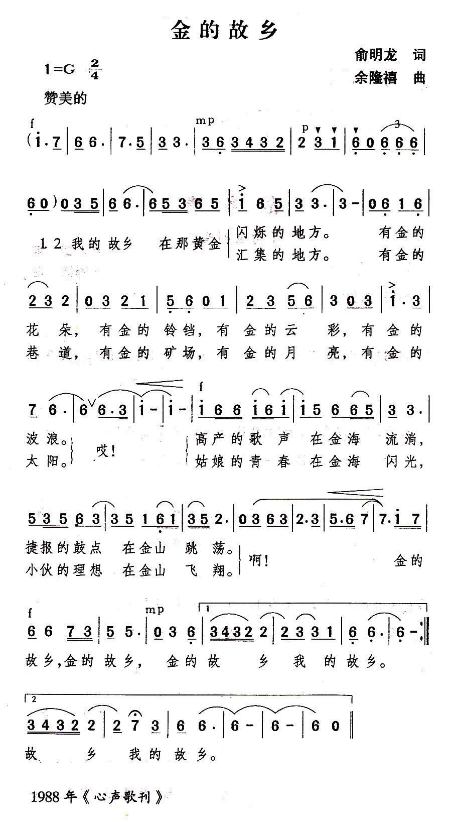 - [歌谱] 太阳下面是故乡 男女声二重唱