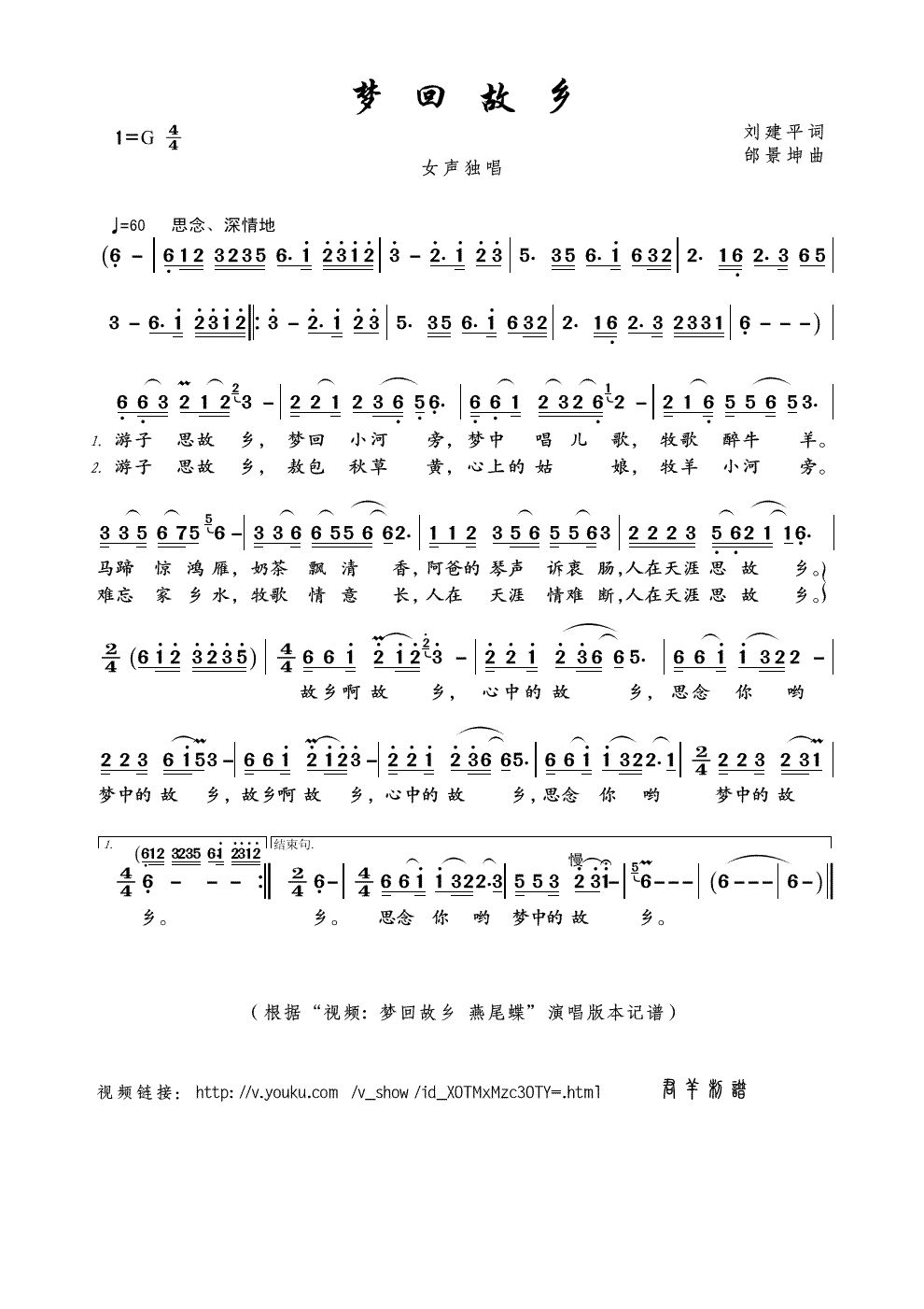 - [巴乌谱,笛子谱,歌谱,葫芦丝谱,吉他谱,箫谱] 梦回故乡