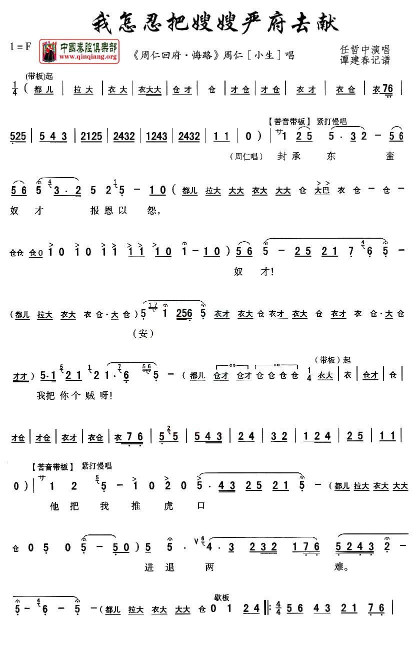 秦腔 我怎忍把嫂嫂严府去献 周仁回府 周仁唱段