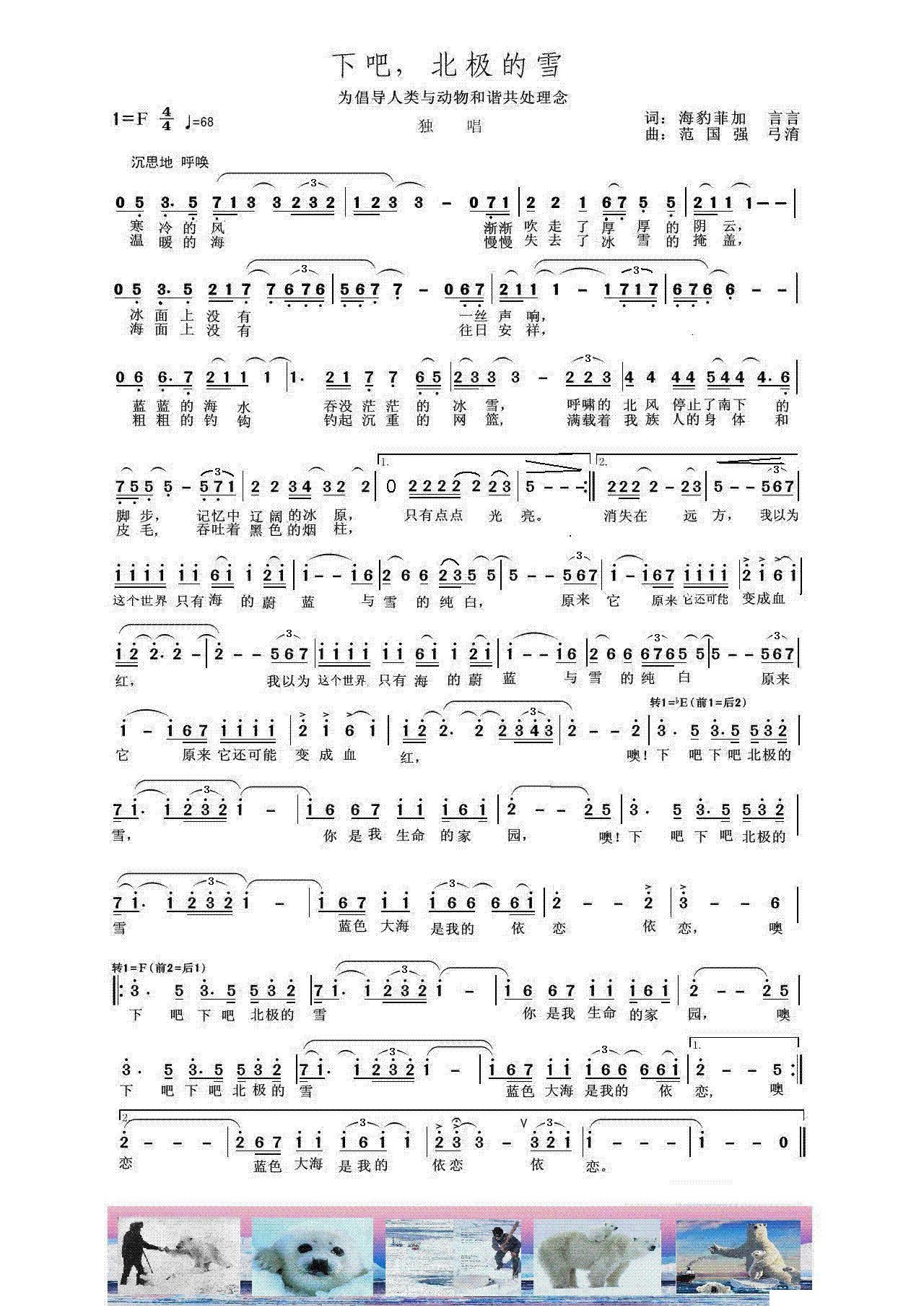 - [歌谱] 北极雪 陈慧琳 冯德伦