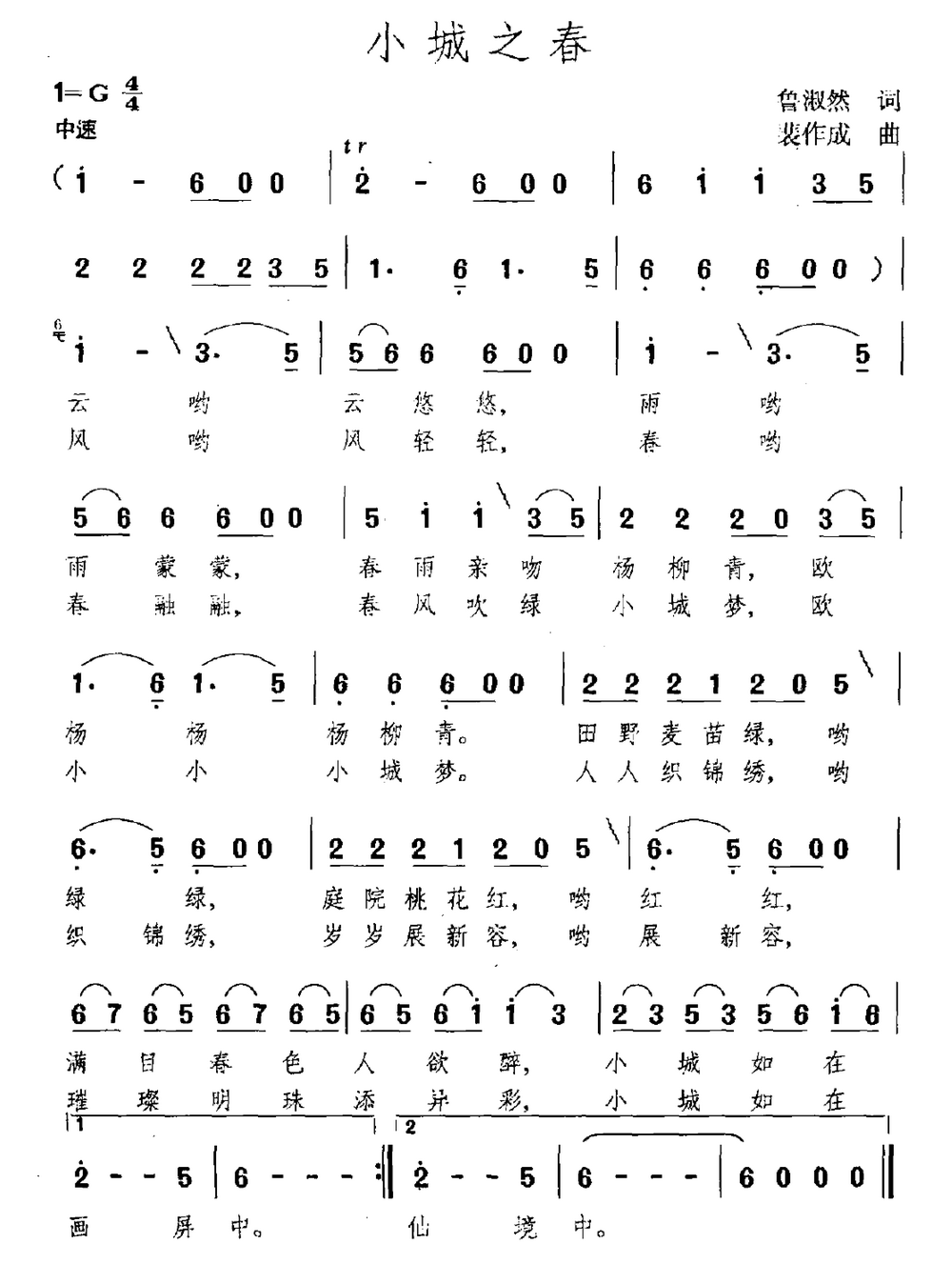 - [歌谱] 小城之春