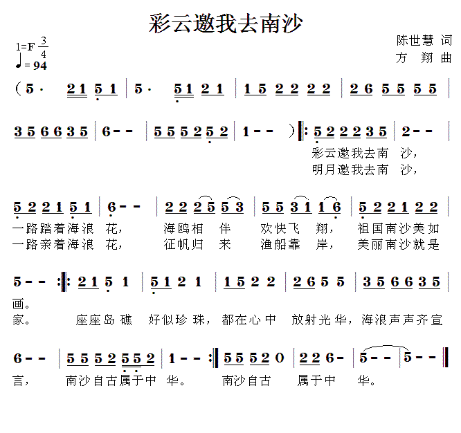 > 彩云邀我去南沙