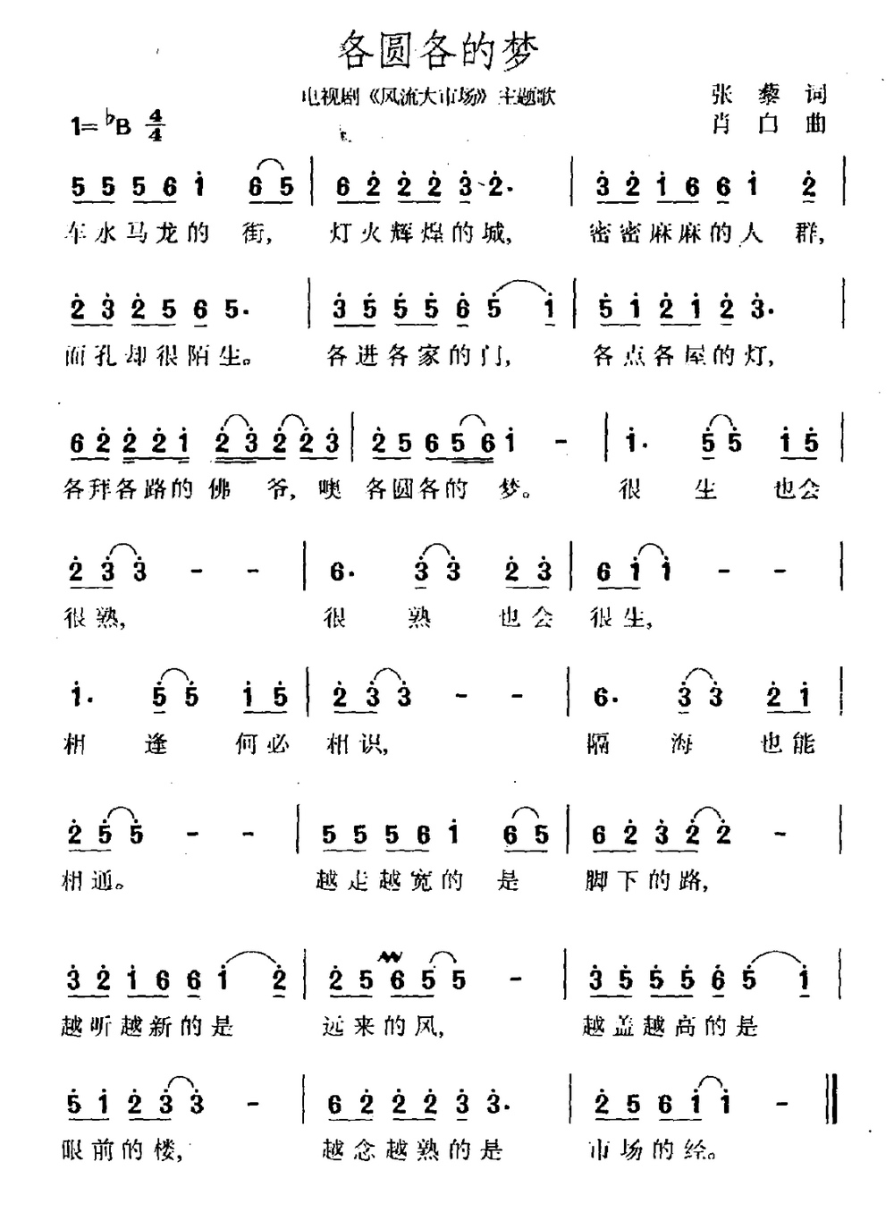 > 各圆各的梦 电视剧 风流大市场 主题曲