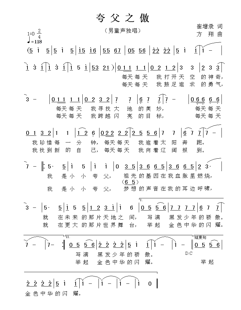 - [歌谱] 夸父之傲