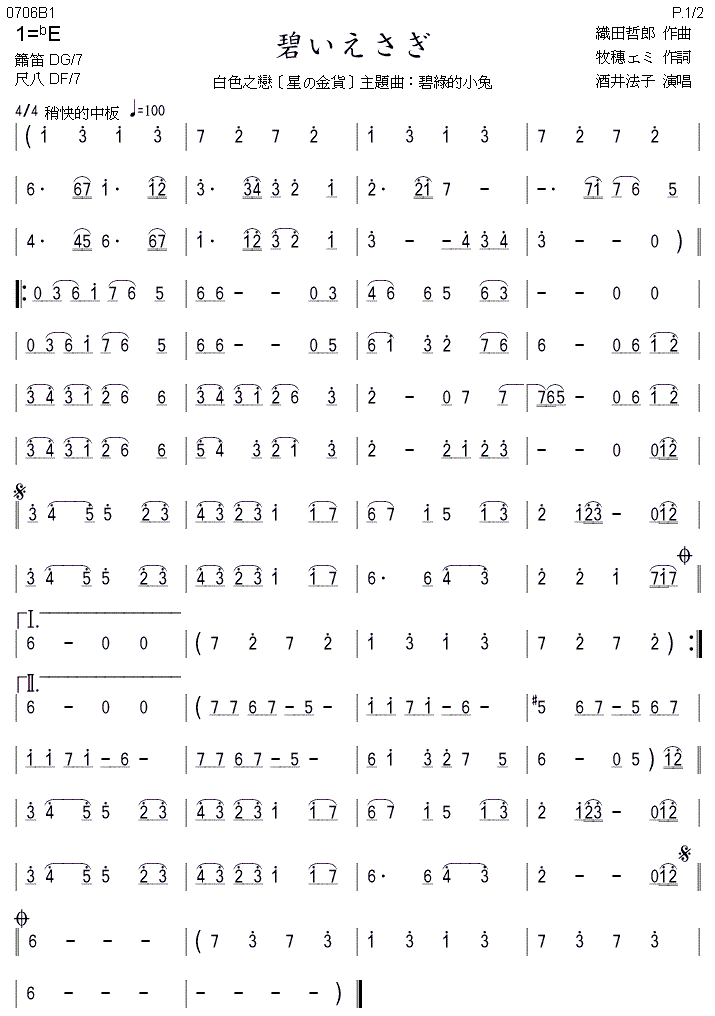 碧绿的小兔 日本电视剧 星星的金币 主题歌 箫