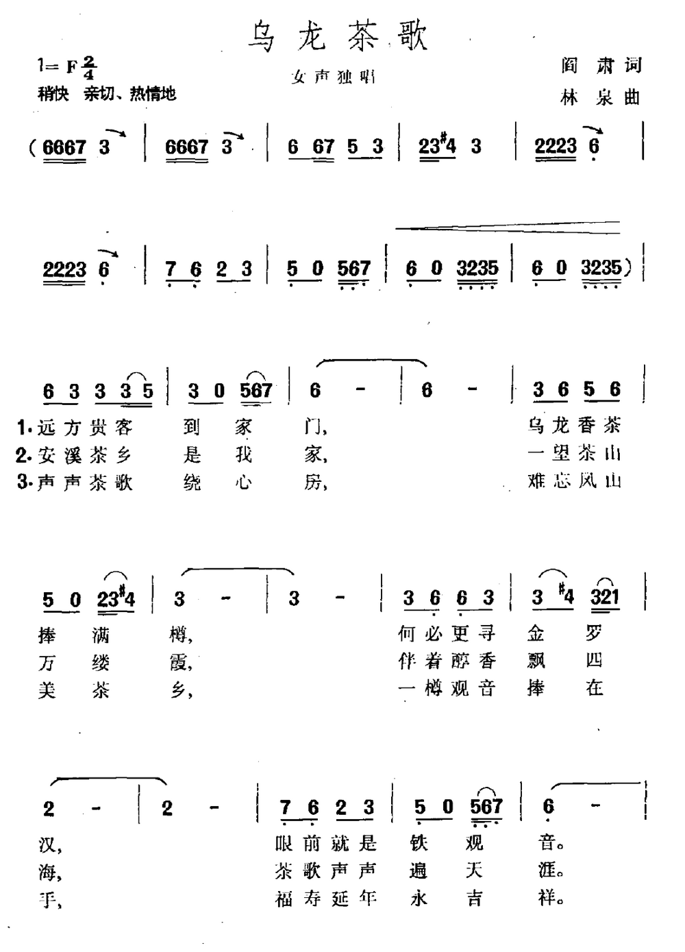 - [歌谱] 乌龙茶歌