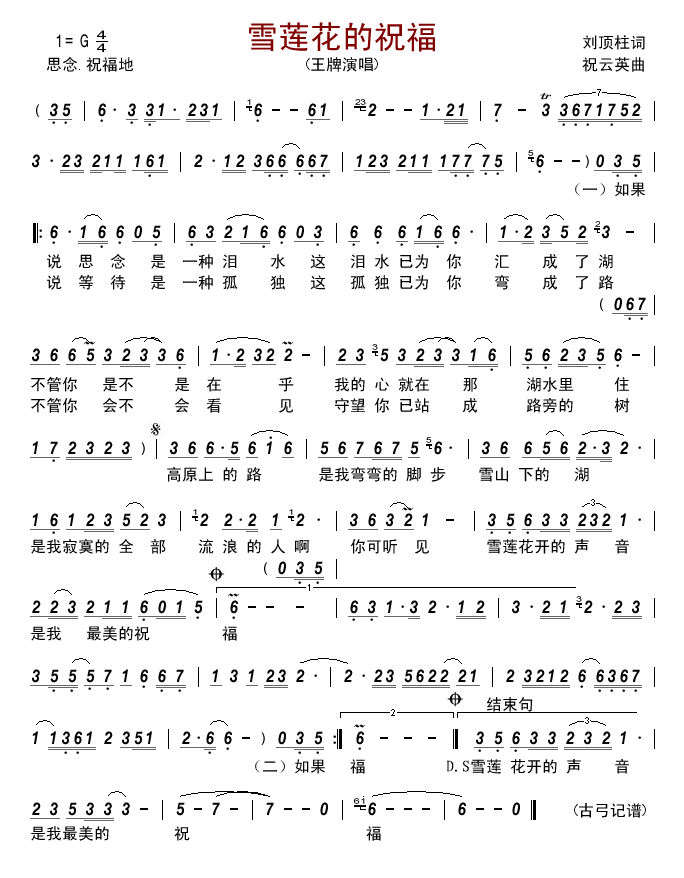 - [歌谱] 吉祥的雪莲花