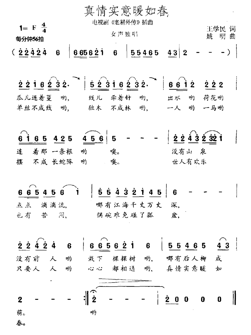 > 真情实意暖如春 电视剧 老耕外传 插曲