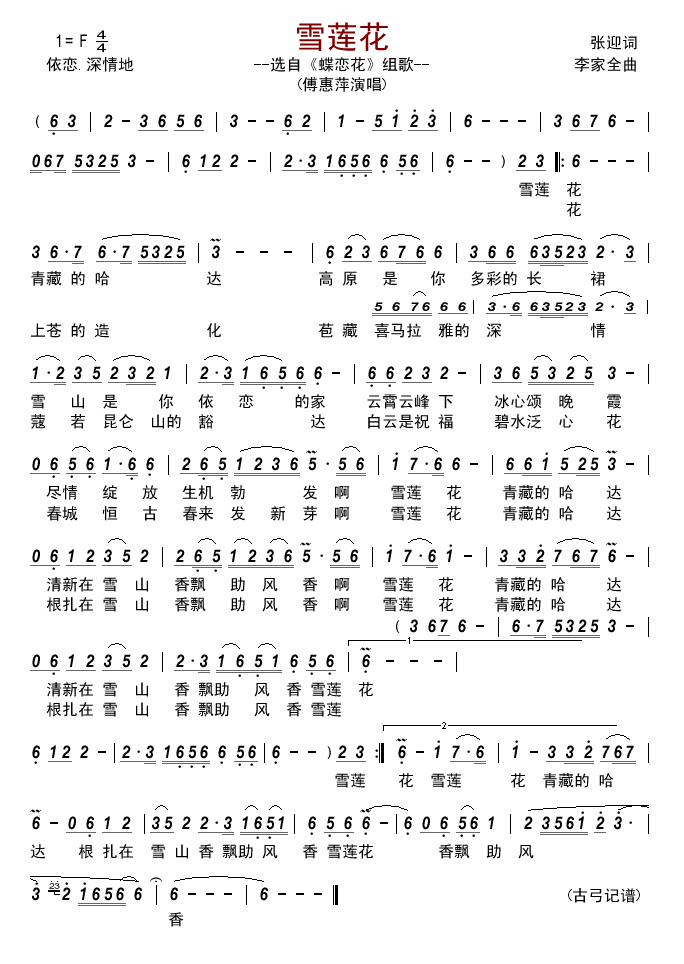 - [钢琴谱,歌谱] 雪莲花 钢伴谱