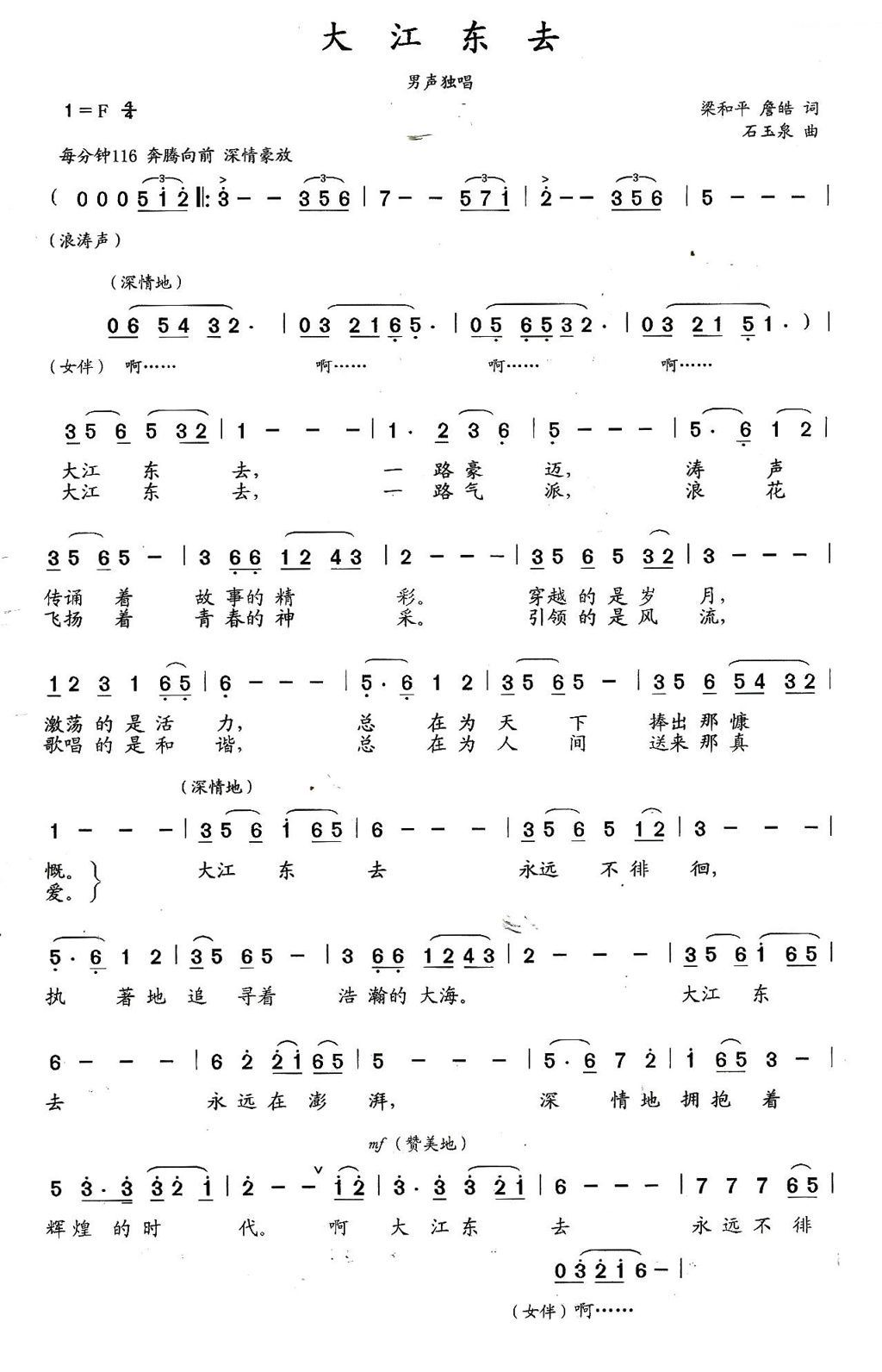 - [歌谱] 大江东去 梁和平