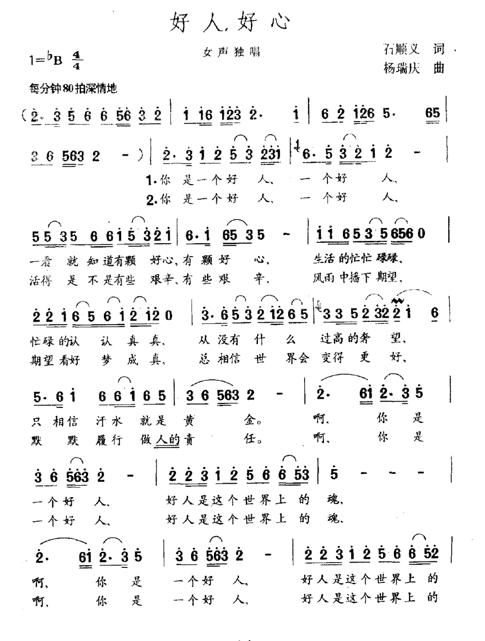 - [歌谱] 你是一个好人 电视剧 小楼风景 主题曲
