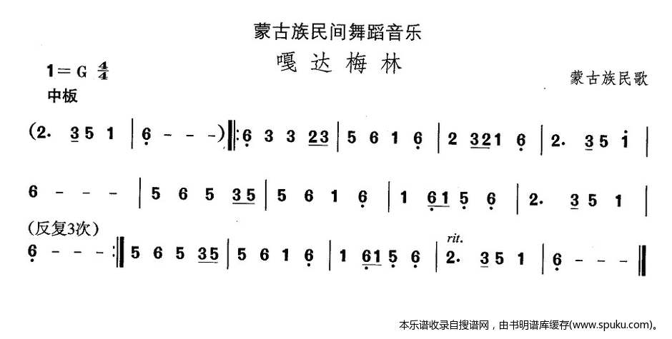 - [歌谱] 嘎达梅林 蒙古族民歌