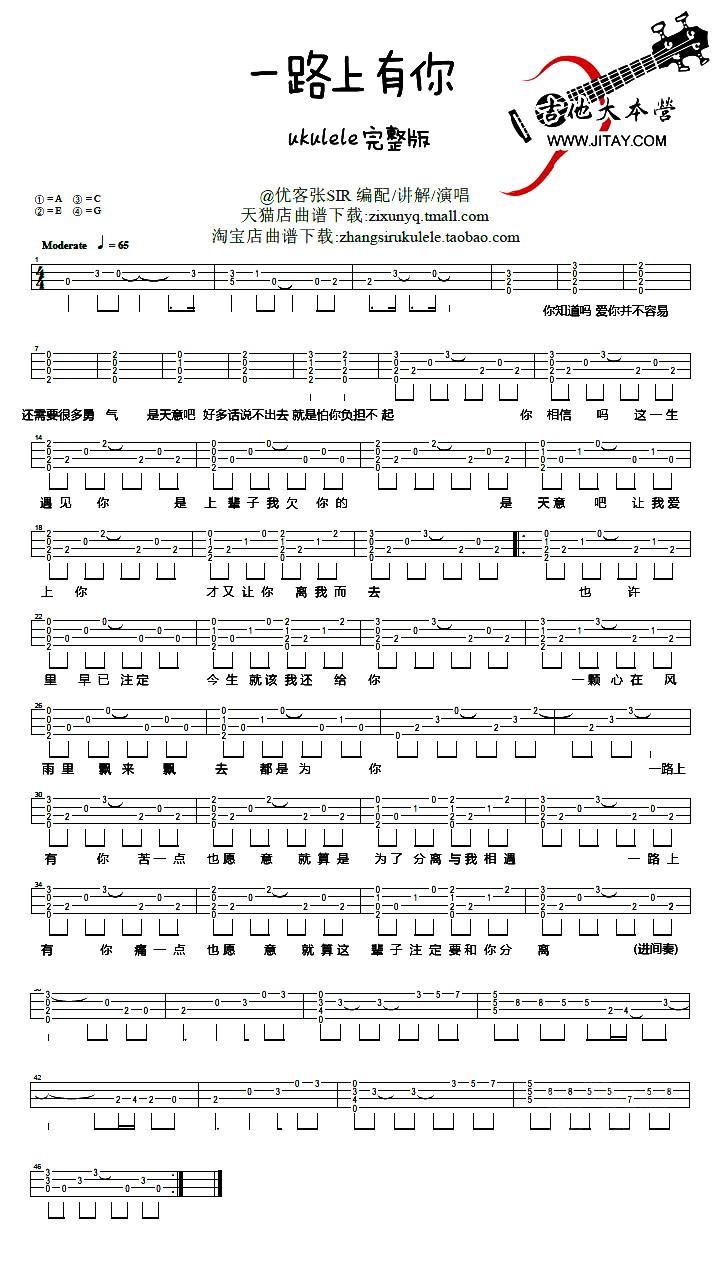 - [钢琴谱,吉他谱] 钢琴 一路上有你