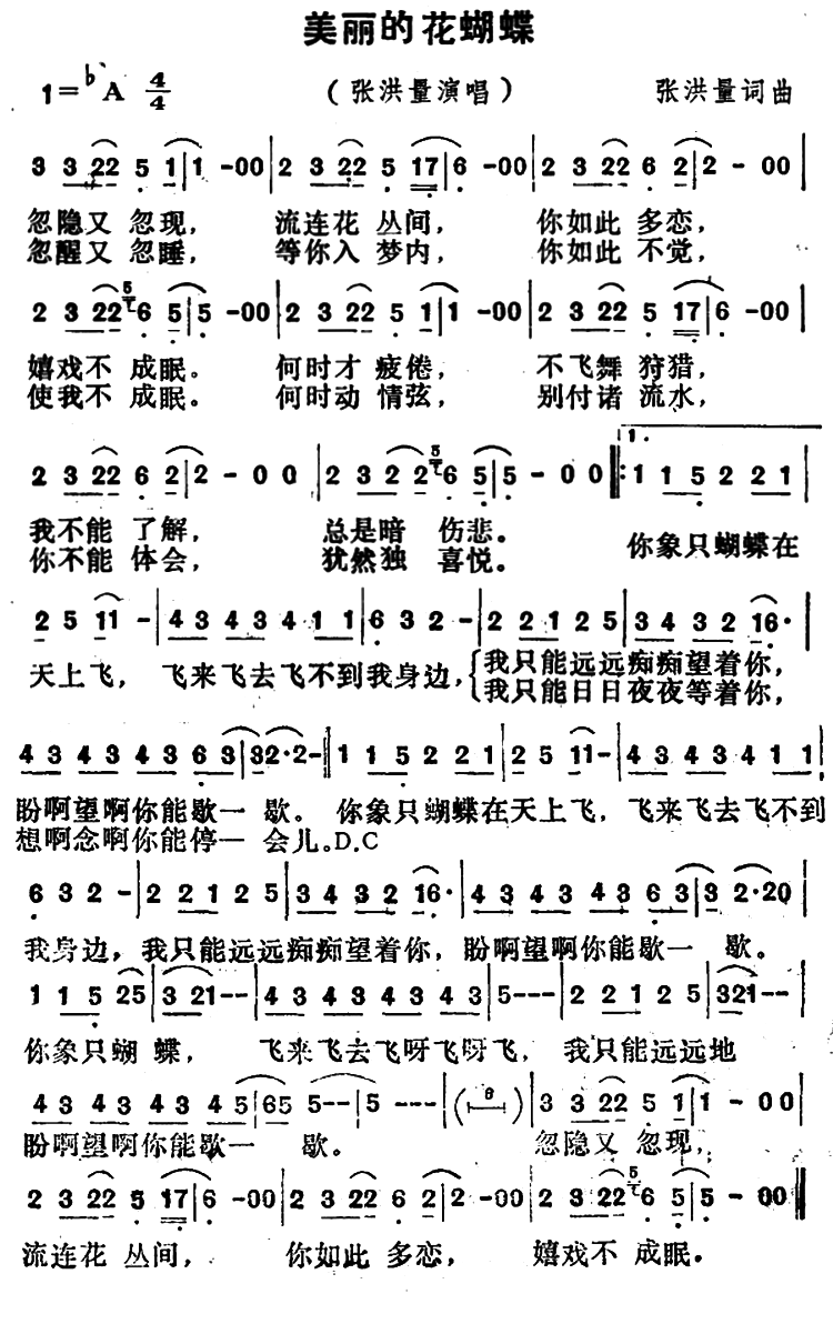 - [歌谱] 美丽的花蝴蝶