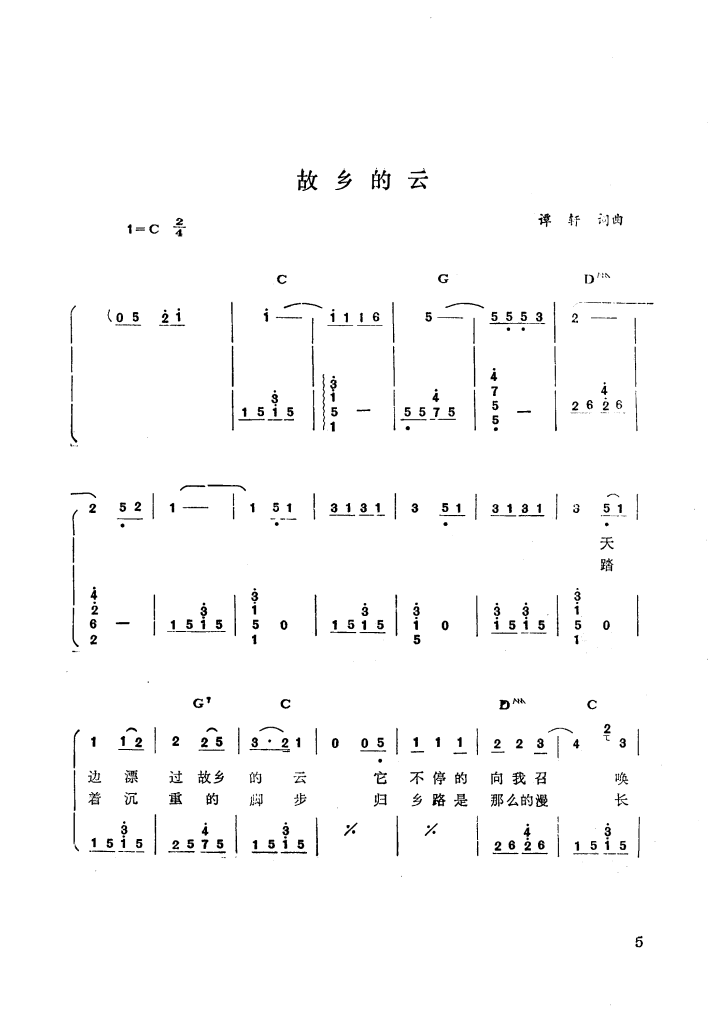 - [二胡谱,歌谱,胡琴谱] 故乡的云