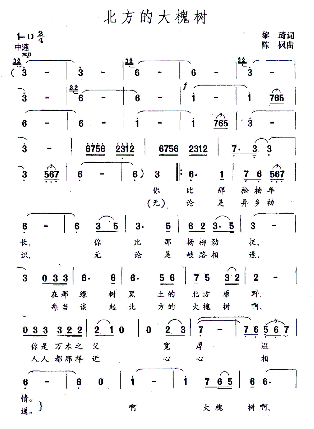 - [歌谱] 北方的大槐树