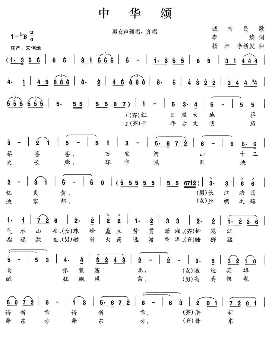 - [歌谱] 中华颂