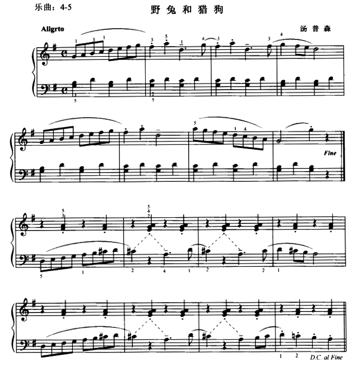 约翰 汤普森现代钢琴教程2 大汤2 25野兔和猎狗 G调