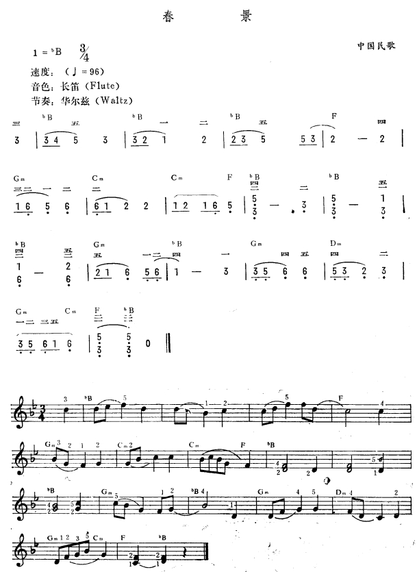 - [歌谱] 春景 单弦