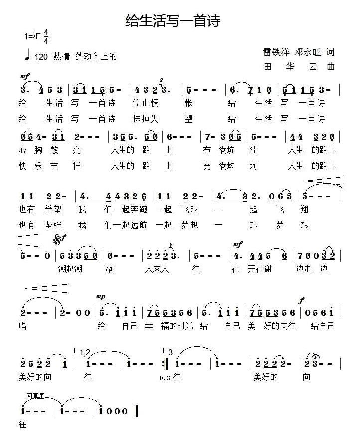 - [歌谱] 给生活写一首诗