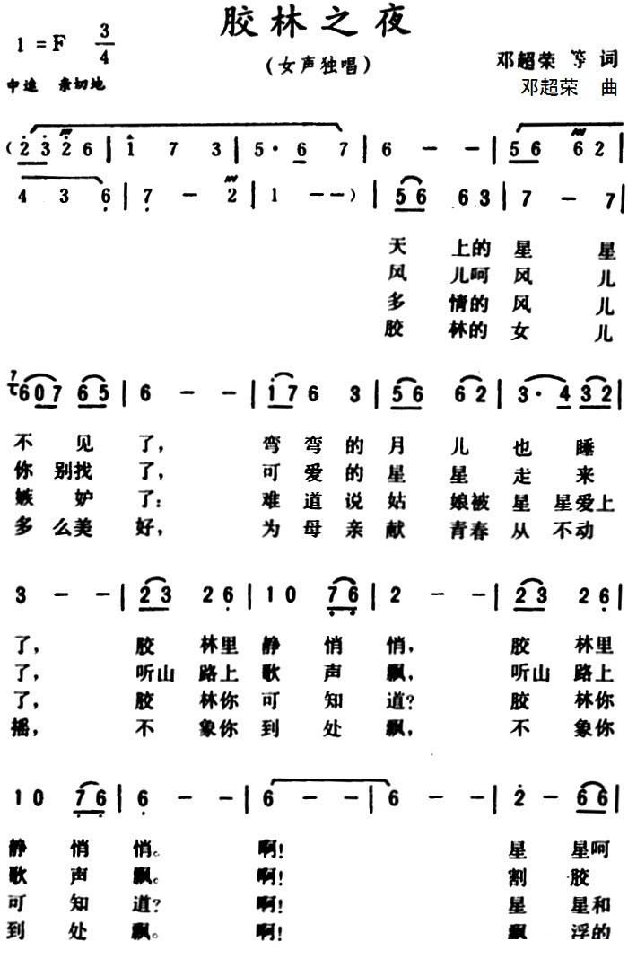 - [歌谱] 胶林小夜曲