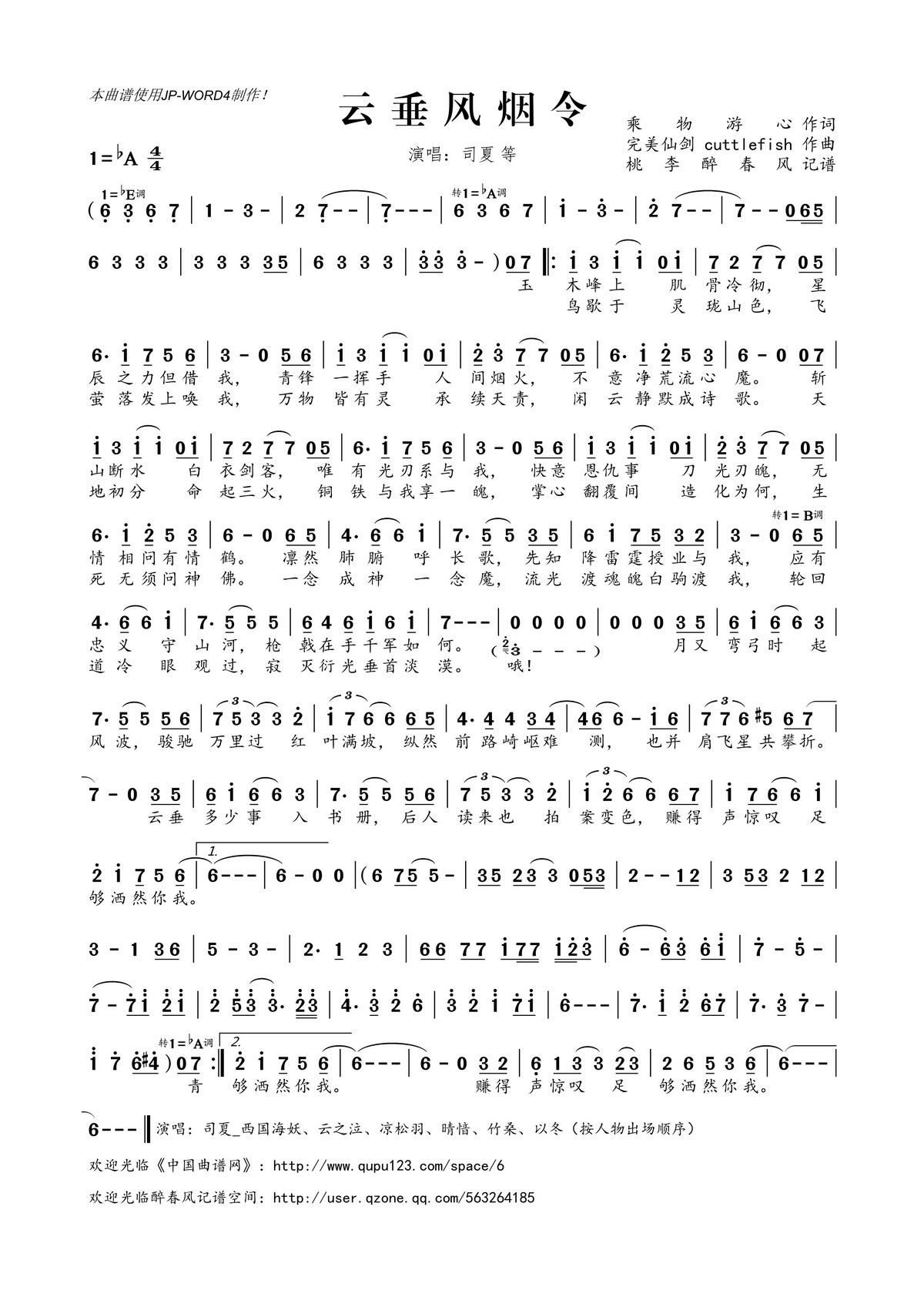 - [歌谱,古筝谱] 云