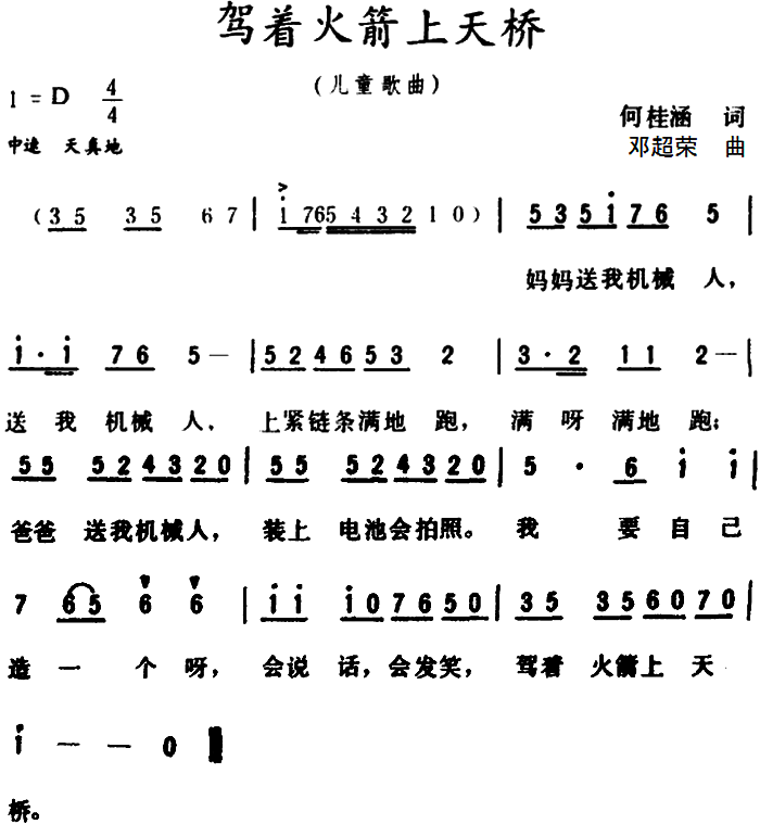 - [歌谱] 我驾飞船上蓝天 儿童歌