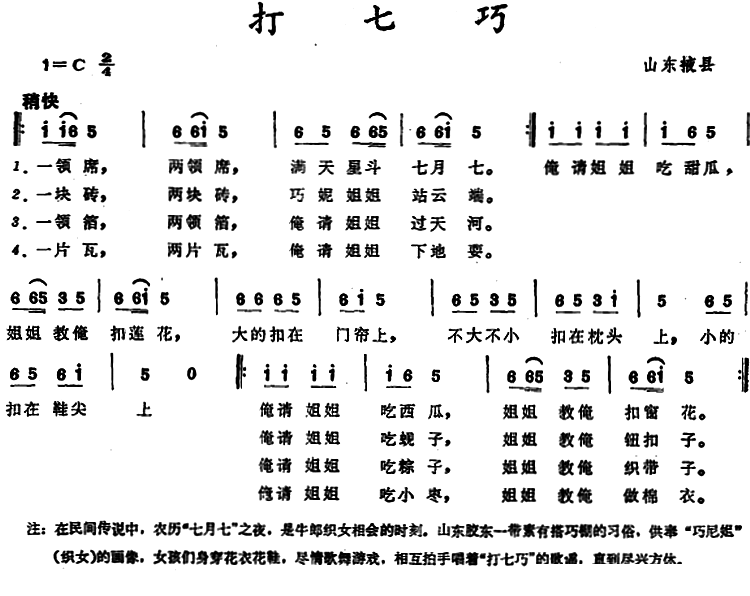 - [歌谱] 猜谜谣 山东平阴童谣