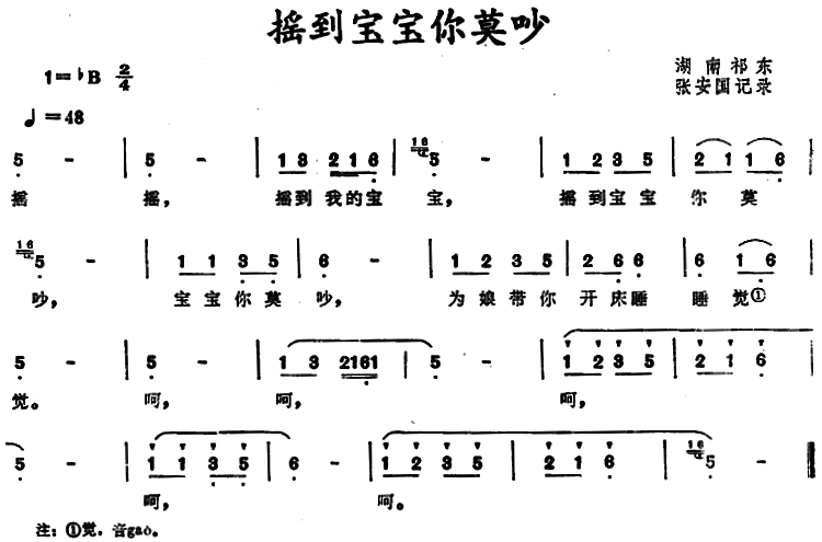 > 摇到宝宝你莫吵 湖南祁东原摇篮曲