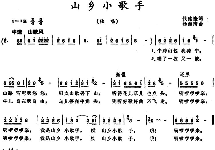 - [歌谱] 小放鸭