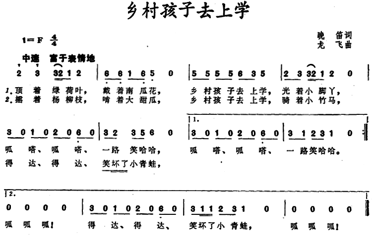 - [歌谱] 乡村孩子去上学