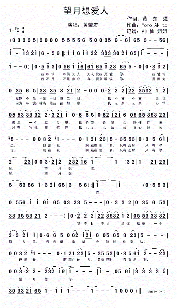 - [歌谱] 望月想爱人 彩谱