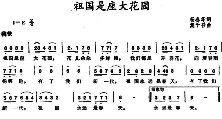 - [歌谱] 祖国是座大花园 儿童歌曲